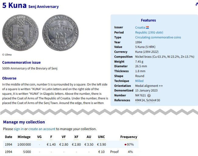 2. Kataloška cijena niža je od tržišne. Kod rijetkih ili trenutno vrlo traženih kovanica ili novčanica tržišna cijena može višestruko nadmašiti katalošku.