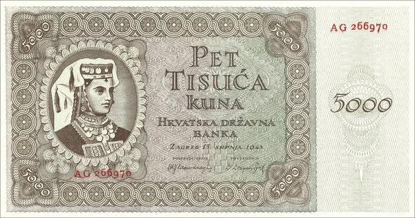 Kao predloške za izradu razglednica iz serijala Hrvatske narodne nošnje, njihov autor Vladimir Kirin koristio je fotografije Toše Dabca, nastale uglavnom na smotrama hrvatske seljačke kulture u Zagrebu u drugoj polovici 30-ih godina prošlog stoljeća. Za izradu crteža likova na novčanicama NDH kojih je također bio autor, poslužili su mu kao predlošci vlastiti raniji radovi s tih razglednica. Razglednica koju je koristio prilikom oblikovanja motiva na novčanici od 5000 Kuna nosi naziv Bosna (Zlosela), te je numerirana brojem 40. Objavljena je krajem 1939. ili početkom 1940. godine, dakle, prije Zorinog nastupa na smotri na Slimenima. Na njoj se nalaze muškarac i djevojka u hrvatskoj nošnji iz kupreškog kraja. Fotografija koja je Kirinu poslužila kao predložak za izradu crteža na toj razglednici nastala je na Smotri hrvatske seljačke kulture u Zagrebu 11. lipnja 1939. godine, te se prikazuje u mojoj knjizi Novčanice NDH: Neispričane priče koja izlazi u studenom ove godine.