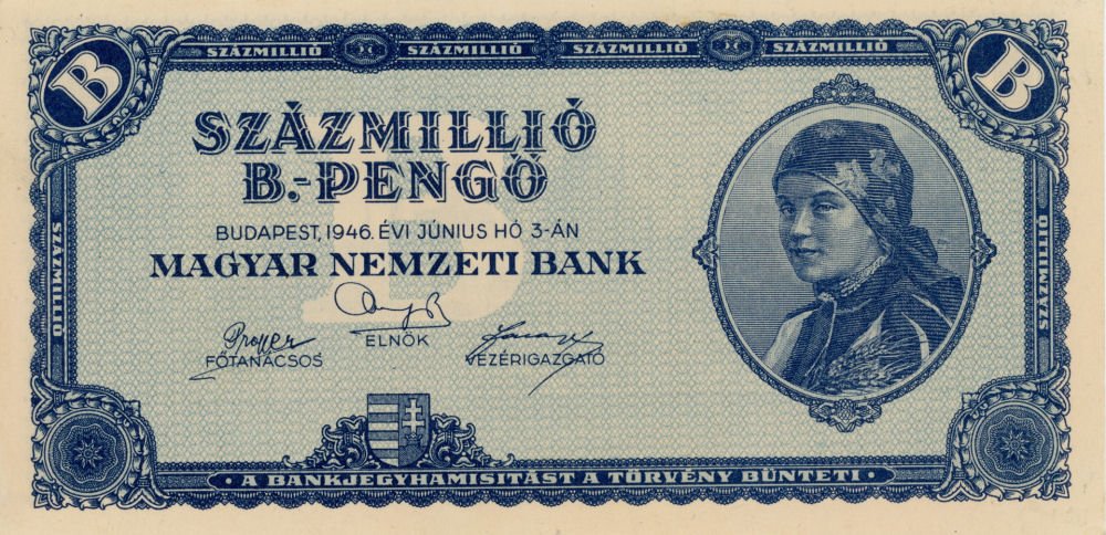 Novčanica u iznosu od 100.000.000.000.000.000.000 pengőa (ova brojka ima 20 nula) predstavlja krajnju točku ove inflacijske spirale. Unatoč astronomskoj nominali, njezina realna vrijednost bila je iznimno mala (oko 0,20 USD), što jasno ilustrira razmjere monetarnog kolapsa.