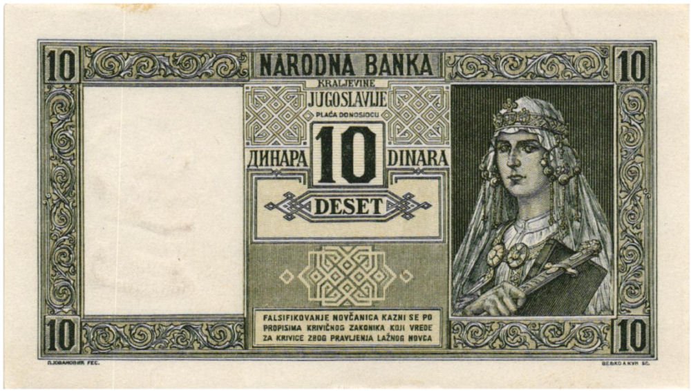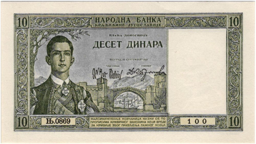 Novčanica od 10 dinara s datumom 22.09.1939., izdanje Narodne banke Kraljevine Jugoslavije, pripada skupini najzanimljivijih i najintrigantnijih emisija jugoslavenskog (prije)ratnog novca. Iako je formalno pripremljena za redoviti optjecaj, njezina je stvarna sudbina neraskidivo vezana uz dramatične događaje travnja 1941. godine, što joj daje posebno mjesto u numizmatičkoj i povijesnoj literaturi.