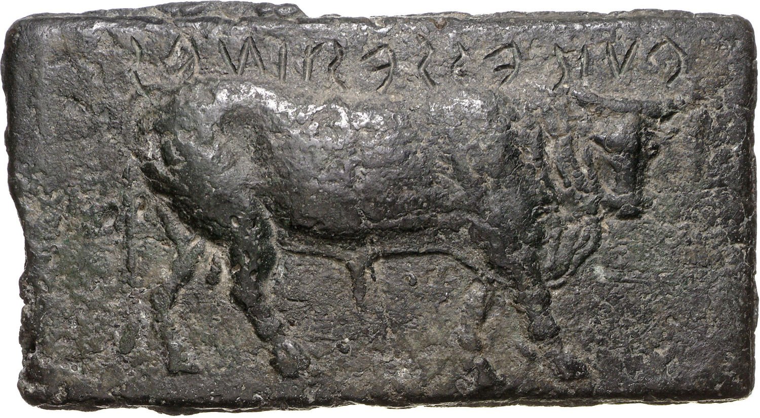 Već oko 450. pr. Kr., u zakonima XII ploča, uz stoku kao platežno sredstvo spominju se i grubi komadi bakra (aes). Najstariji takvi nalazi pokazuju nepravilne, neobrađene komade metala. Ova vrsta naziva se aes rude („sirovi bakar“), dok se za smjesu bakra i kositra koristi naziv aes infectum („miješani bakar“).