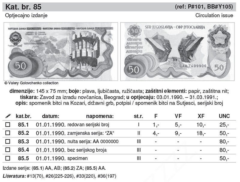 Na novčanici od 50 kuna iz iste emisije zamjenska serija bila je „BZ“, ali samo ona s niskim brojevima. Ostatak novčanica numeriran tom slovnom oznakom serije pušten je u optjecaj kao redovne novčanice.